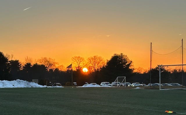 But there are also sunsets over cold soccer fields. Conversations with strangers outside a port-o-potty. Prayers whispered in relief and gratitude — sometimes in the same breath.