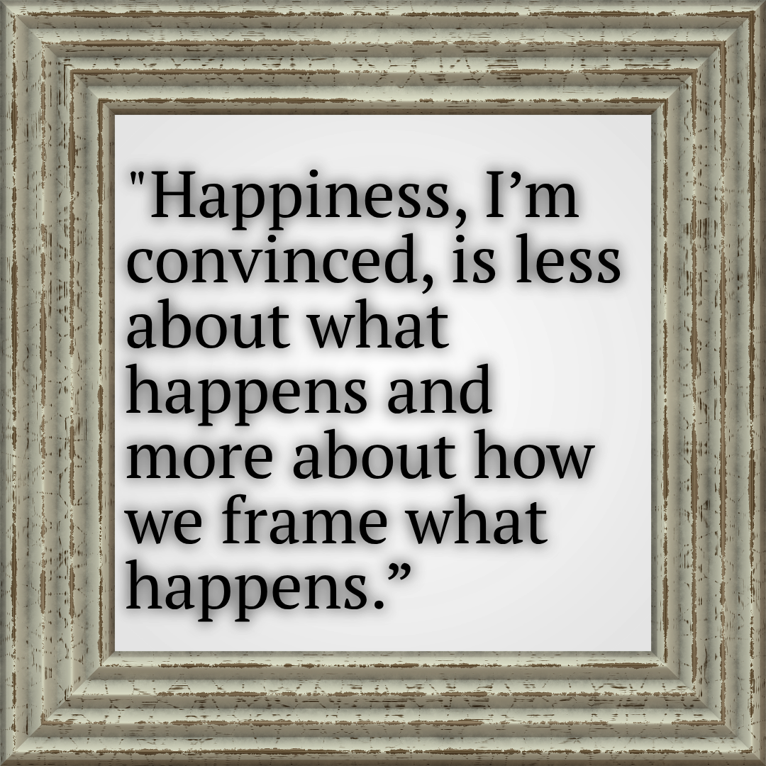 Happiness, I’m convinced, is less about what happens and more about how we frame what happens. Two people can live the same day and tell entirely different stories. One drafts a tragedy. The other writes a dark comedy with spiritual undertones and questionable bathroom aim.
